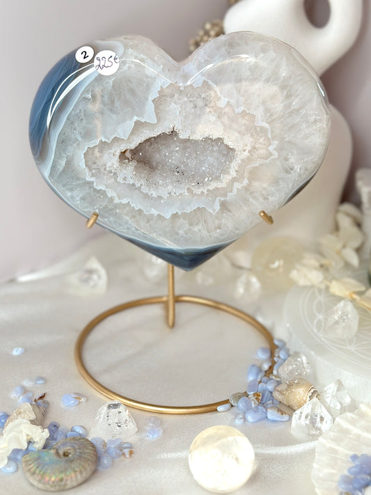 Cœur Agate cristallisée du Brésil - socle inclus